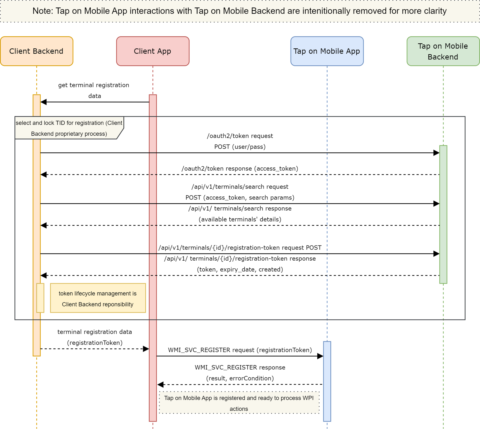It is possible to launch WMI_SVC_REGISTER call without providing a registration token. In this scenario ToM app will launch a QR code scanner but without any preparatory screen; It is strongly recommended not to consider any QR-code read based implementations until this process is explicitly covered by the documentation; |