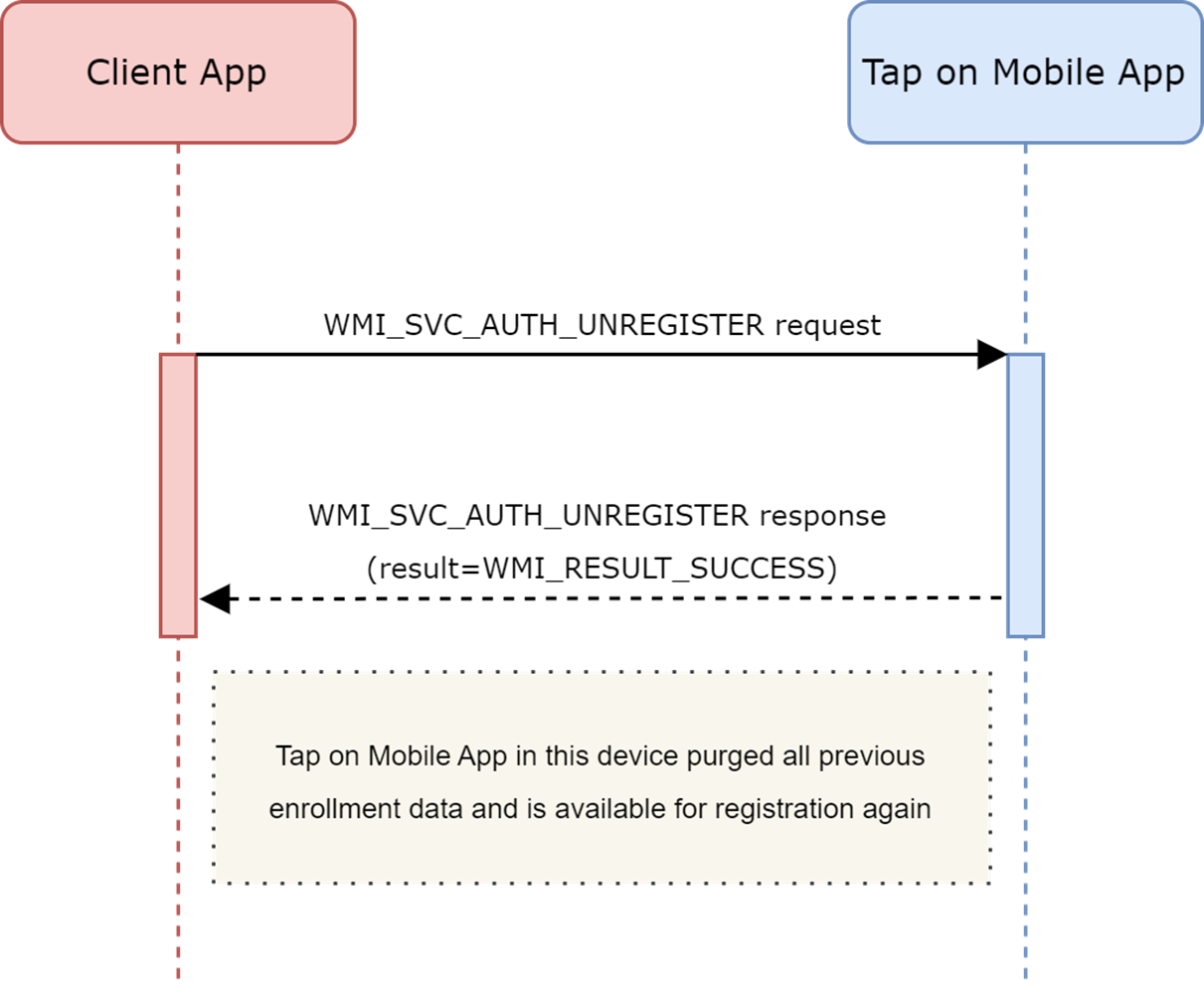 • WMI_SVC_AUTH_UNREGISTER function; • WMI_SVC_REGISTER function (available to all 3rd party packages and purging the previous registration process); • Unsubscribe option available from login screen (for unauthenticated app); • Unregistering from merchant portal; |
