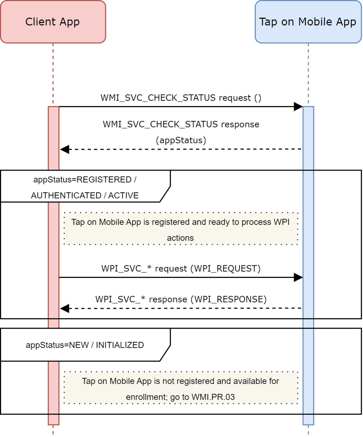 To allow assessing which action is required, WMI offers a dedicated function to retrieve the current ToM application status. It is strongly recommended to retrieve this information outside of payment acceptance context.