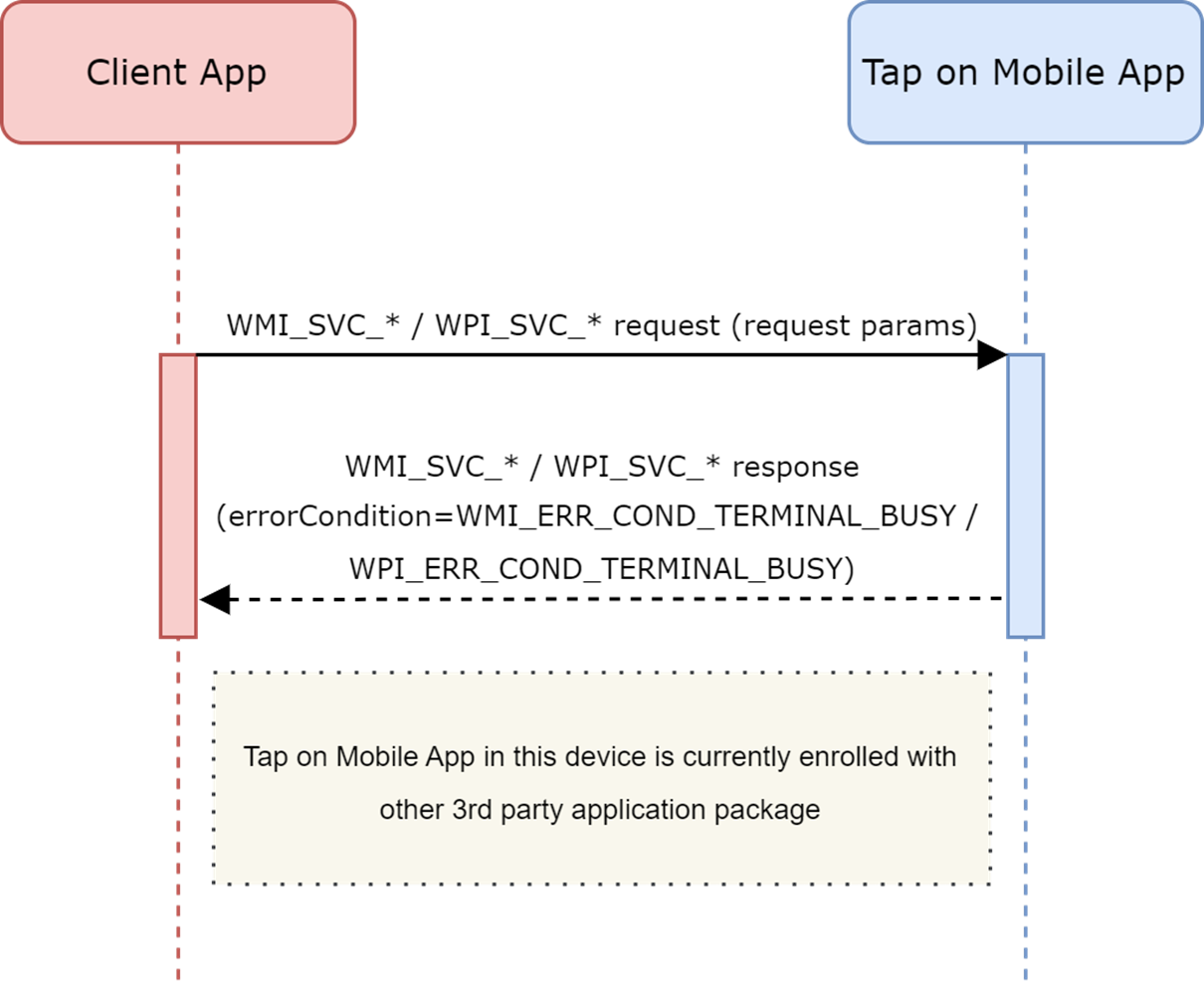 While ToM application is exclusively bound to certain 3rd party application package name, all WPI and selected WMI requests incoming from other application packages will be rejected with a dedicated errorCondition code;