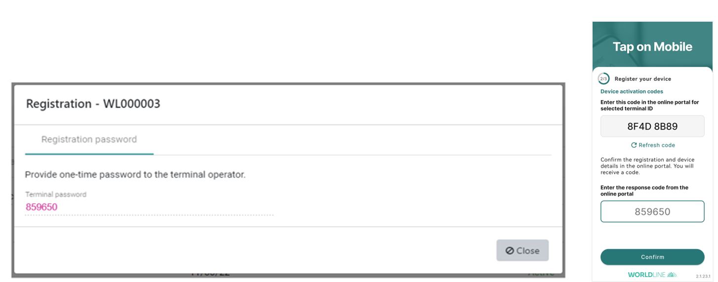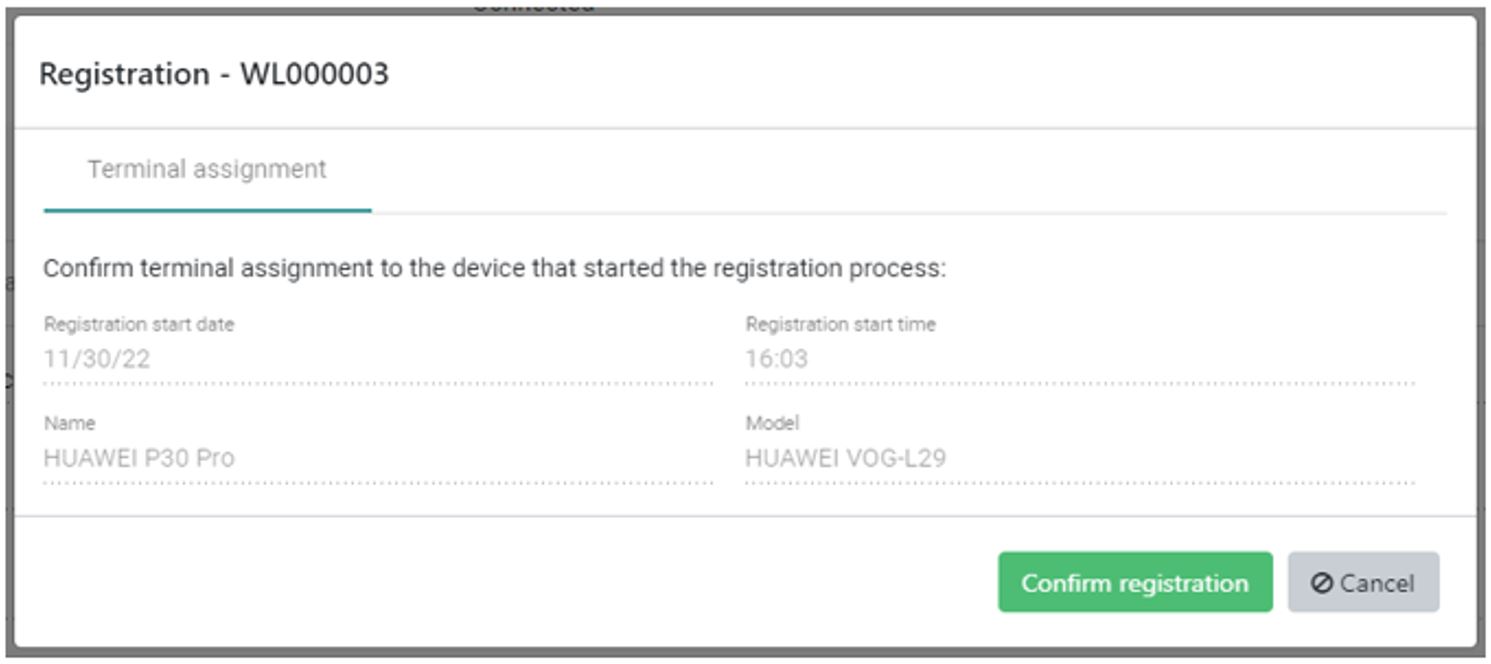 The online Portal searches for the device – click Confirm registration after the terminal was found.