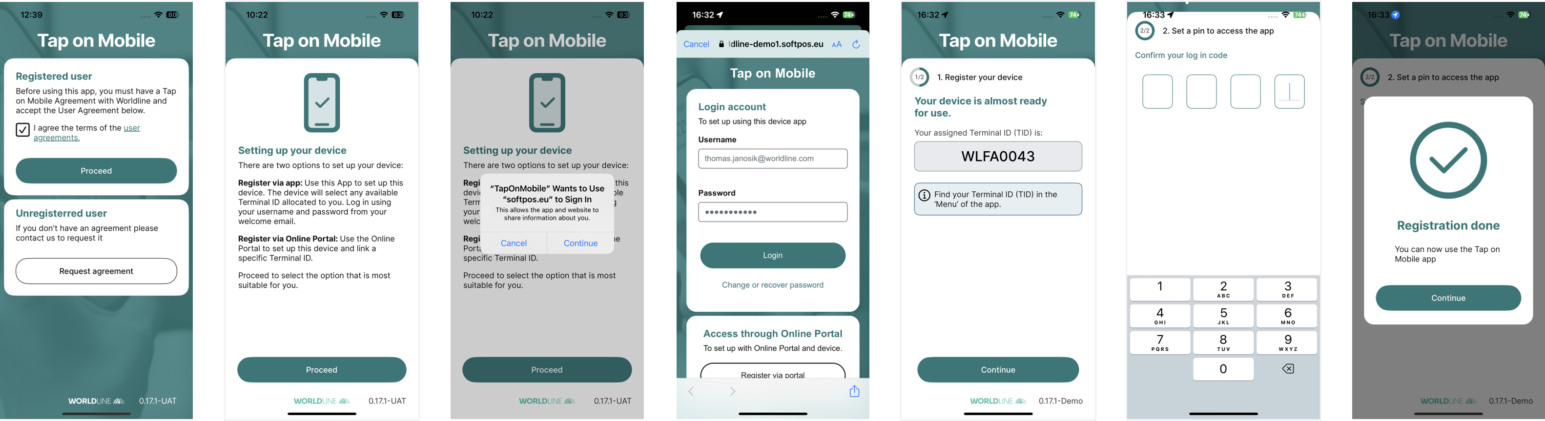 Press Registration button to start the terminal registration