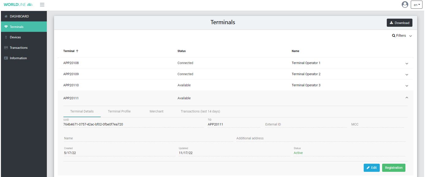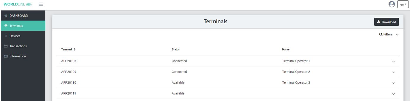 Select a Terminal with the status ‘Available’ and click the arrow button to expand the terminal view