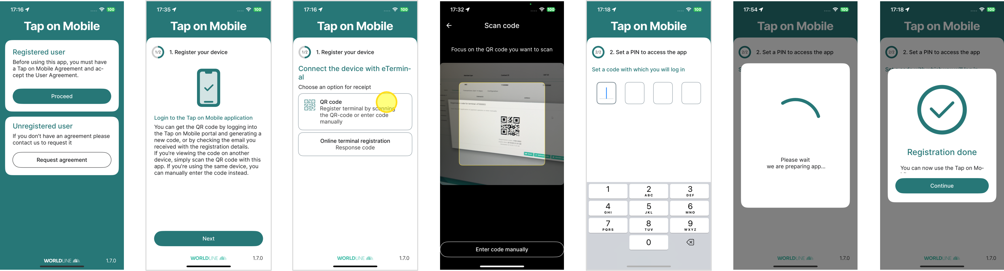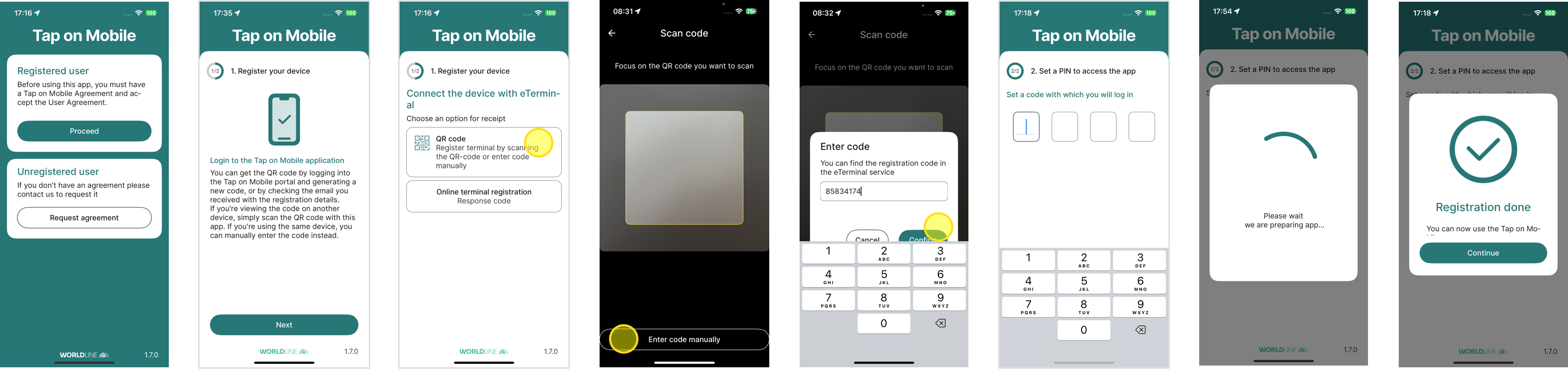 4. Terminal registration with QR code / Enter code manually (the code is displayed under the QR code)