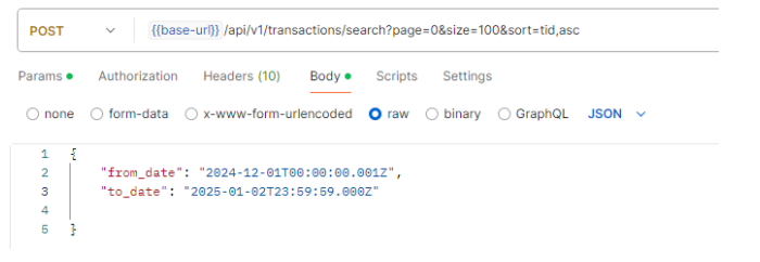 Sample transaction search request