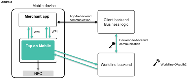 App-to-app: this is the easiest way to integrate and uses Intents 1 on Android. This requires at least two apps; Tap on Mobile and the partner or merchant app. See WPI and WMI documentation for more information.