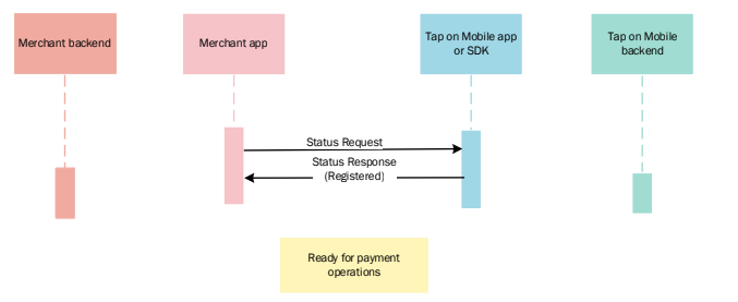 This function is intended to be used outside of payment acceptance context to determine the current Tap on Mobile application status and assess whether it is properly authenticated and ready to perform payment acceptance functions.